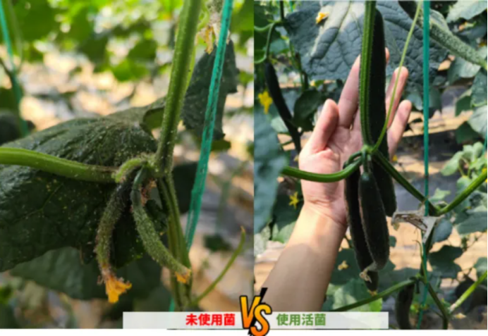 作物促生:在北京密云区有机黄瓜种植基地,活菌智能发酵技术应用生根菌,移栽至采收全程4次施用,总投入160元,苗期株高平均提升13cm,亩增产13.7%,单亩提升160公斤。